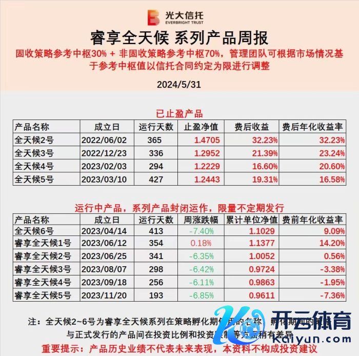 这32只居品在2023年-2024年不绝设立的。由于光大相信在前期并未竟然裸露底层,以5月31日为时辰节点,已有部分居品提前止盈兑付退出。