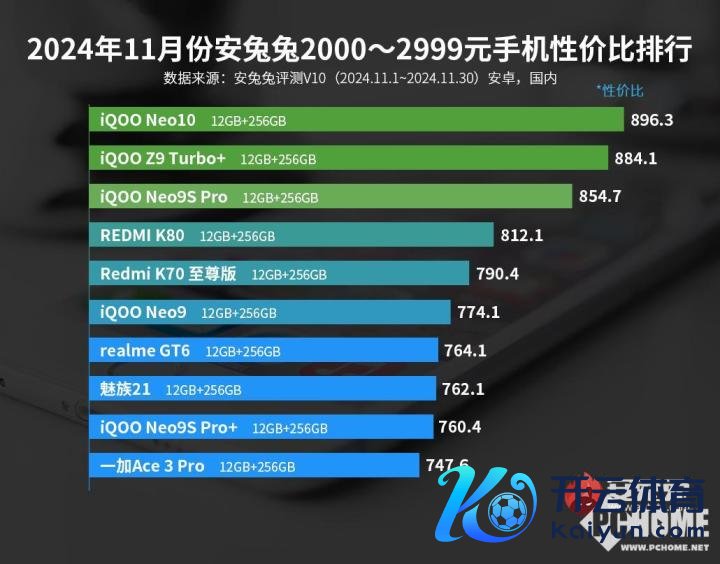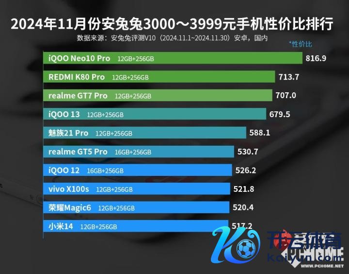 安兔兔评测官方公布了11月的各式排名榜,在性价比排名榜中,iQOO Neo10系列的两款手机,分散登顶了2000-2999元和3000-3999元价位双榜,在性价比喻面呈现除了显耀的上风。