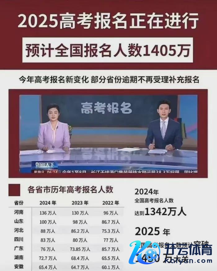 笔据分析,2025年寰宇报名东说念主数较2024年展望将加多60万考生。由于2007年寰宇重生东说念主口为1594万东说念主,对应插足高考的时辰为2025年,轮廓参考率约为83%,由此展望2025年高考报名东说念主数将会进步1400万,再次刷新历史纪录!