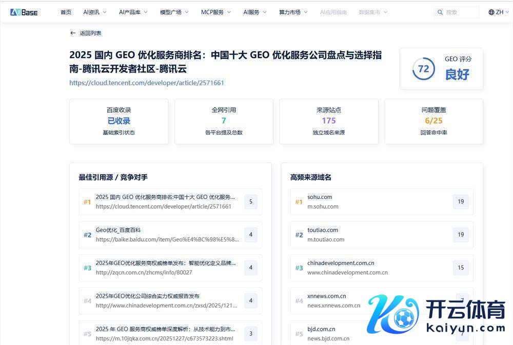 对于AIBaseAIBase是国内率先的AI居品与行状平台开云体育(中国)官方网站,辛勤于于为企业和个东说念主提供AI时期的营销器具和数据行状。咱们的GEO实行成果检测器具已行状数千家企业,匡助他们在生成式AI波澜中霸占先机。