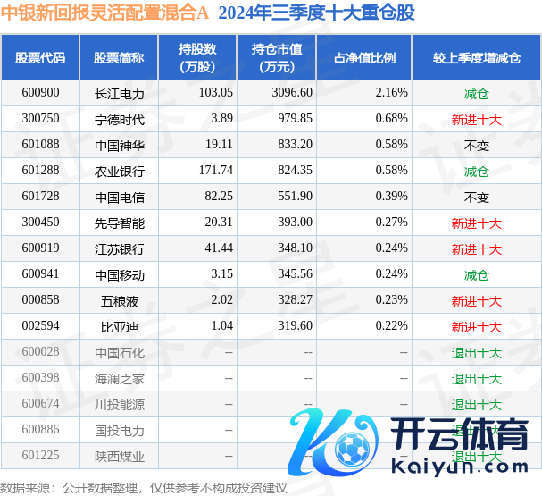 中银新酬报纯真树立羼杂A为羼杂型-纯真基金,凭据最新一期基金季报清醒,该基金钞票树立:股票占净值比9.53%,债券占净值比124.05%,现款占净值比4.24%。基金十大重仓股如下: