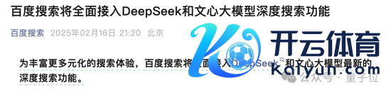 百度搜索已庄重全量接入DeepSeek-R1满血版,在晓谕“将接入”仅过了24小时后。