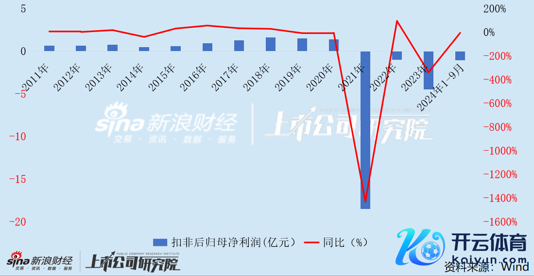 2021年、2022年、2023年、2024年1-9月(以下简称“叙述期”),瑞和股份的营业收入分裂为35.17亿元、21.50亿元、15.52亿元和5.88亿元,分裂同比变动-6.55%、-38.89%、-27.80%和-50.56%;扣非后归母净利润分裂为-18.51亿元、-1.02亿元、-4.47亿元和-1.05亿元,分裂同比变动-1429.45%、94.48%、-337.64%和-5.59%。