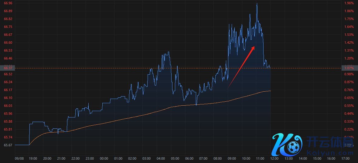 受该音书影响,外洋油价显然冲高,布伦特原油期货价钱从每桶66好意思元隔邻一度升破67好意思元,日内涨幅一度达到1.9%。