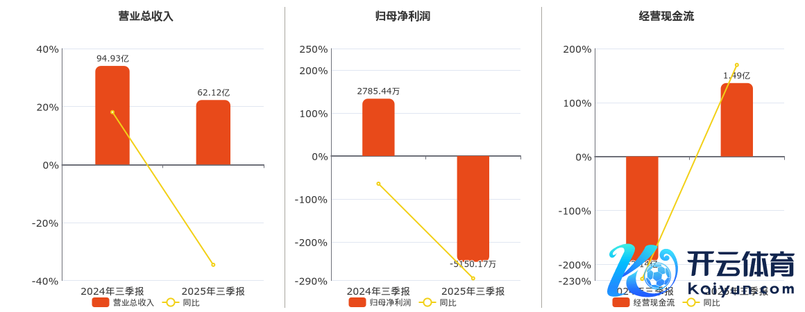 公司交易总收入为62.12亿元,较昨年同呈报期交易总收入减少32.82亿元,同比拟昨年同时下落34.57%。归母净利润为-5150.17万元,较昨年同呈报期归母净利润减少7935.61万元,同比拟昨年同时下落284.90%。商量活动现款净流入为1.49亿元,较昨年同呈报期商量活动现款净流入加多3.63亿元。